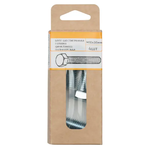 **Болт DIN 933** — крепежное изделие с наружной резьбой на одной конце и с округлой головкой на другой. Используется для соединения надежного и прочного соединения с помощью гайки или резьбового отверстия в одном из соединяемых элементов. Обладает широкой распространенностью в строительстве, машиностроении, производстве мебели и других промышленных и бытовых областях. Оцинкованное покрытие защищает основу от появления ржавчины, что позволяет использовать крепежный элемент в агрессивных условиях. ### Особенности: - размеры изделия — 10 х 35 мм; - количество в упаковке — 4 штуки; - широкая область применения; - устойчивость к воздействию коррозии; - хорошо выдерживает высокие нагрузки давления; - повышенная износостойкость и большой эксплуатационный срок.