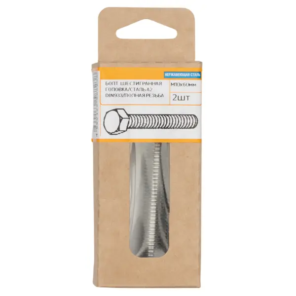**Болт DIN 933** — крепежное изделие с наружной резьбой на одной конце и с округлой головкой на другой. Используется для соединения надежного и прочного соединения с помощью гайки или резьбового отверстия в одном из соединяемых элементов. Обладает широкой распространенностью в строительстве, машиностроении, производстве мебели и других промышленных и бытовых областях. Нержавеющая сталь защищает основу от появления ржавчины, что позволяет использовать крепежный элемент в агрессивных условиях. ### Особенности: - размеры изделия — 10 х 60 мм; - количество в упаковке — 2 штуки; - широкая область применения; - устойчивость к воздействию коррозии; - хорошо выдерживает высокие нагрузки давления; - повышенная износостойкость и большой эксплуатационный срок.