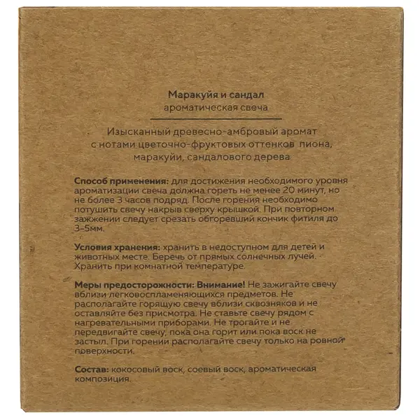 **Свеча в стакане ароматизированная Eco Stil Маракуйя и сандал** используется для создания уютной и романтичной атмосферы в помещении, в декоративных целях, для процедур ароматерапии и массажа. Приятный аромат изделия позволяет снять усталость и снизить стресс. Свеча поставляется в прозрачном стакане, поэтому не нуждается в подсвечнике. Такая упаковка исключает случайное задувание огня. ### Особенности: - натуральный воск при горении не выделяет канцерогенные вещества, хорошо передает ароматы, долго горит; - хлопковый фитиль отличается мягкостью, гибкостью и отличными свойствами горения; - вес — 90 г.