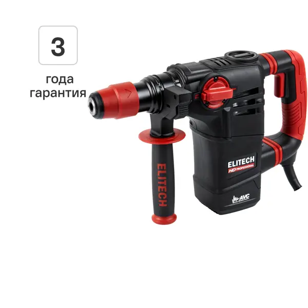 **Перфоратор сетевой SDS-plus Elitech HD RH1130E** — электроинструмент, который станет настоящим помощником как в быту, так и профессиональной деятельности. Он незаменим в ремонтно-строительной области. С его помощью можно подготовить отверстия в бетоне, кирпичной кладке, деревянной и других поверхностях. Эргономичная ручка с нескользящей поверхностью обеспечивает надежный хват и комфортную работу. Для изменения движения оснастки в обратную сторону предусмотрен реверс. Надежная работа и высокая производительность обеспечивается щеточным двигателем. Для лучшего удержания перфоратора предусмотрена дополнительная рукоятка. ### Особенности: - мощность устройства составляет 1100 Вт; - скорость оборотов достигает 920 в минуту; - сила удара достигает 5 Дж, что позволяет справиться с твердыми поверхностями; - количество режимов работы — три: сверление, сверлением с ударом и долбление; - максимальный диаметр сверления в поверхности из бетона — 26 мм; - виброгасящая основная рукоятка оптимальна