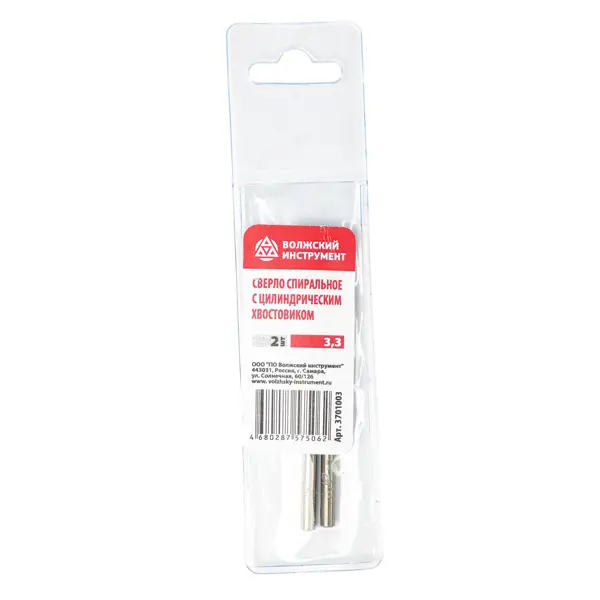 Сверло спиральное по металлу Волжский инструмент 3701003 3.3x65 мм, 2 шт.