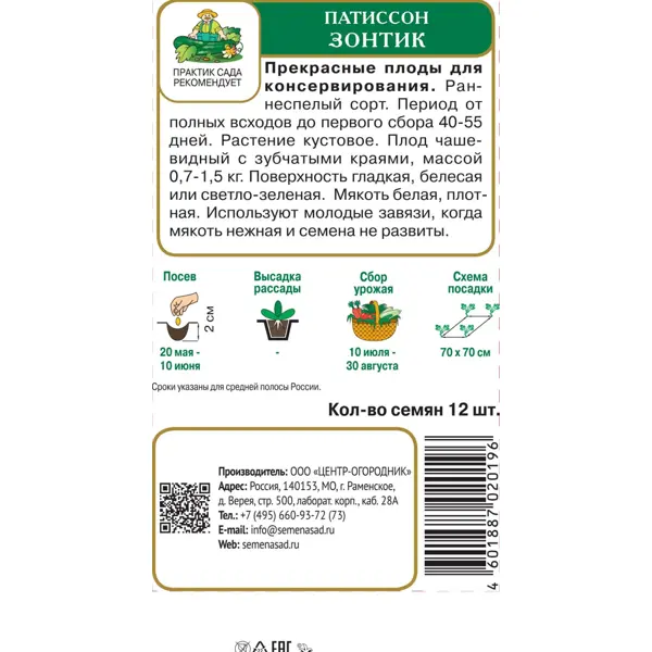 | Тип продукта | Семена овощных культур |