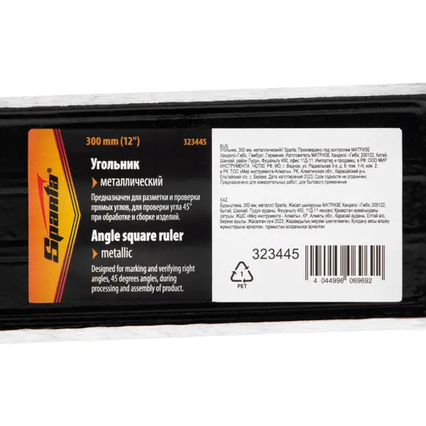 **Угольник Sparta 323445** — это металлический угольник, который используется в столярных и строительных работах для задания и проверки угла 90 градусов при сборке или обработке различных изделий. ### Особенности: