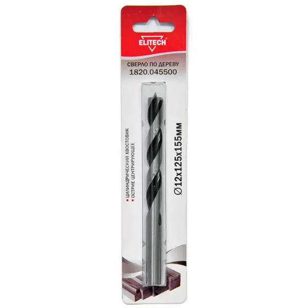 Сверло спиральное по дереву Elitech 1820.045500 12x155 мм