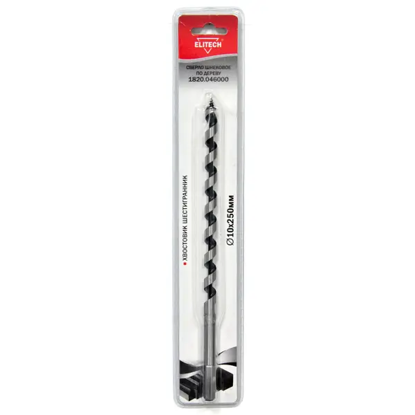 **Сверло балочное Elitech** предназначено для сверления глубоких отверстий в мягких и твердых породах древесины, фанеры и ДСП. На конце сверла расположен винт с мелкой резьбой для быстрого и комфортного врезания. Обеспечивает точный диаметр получаемого отверстия. ### Особенности: - модель — 1820.046000; - размеры: 10 x 250 мм.