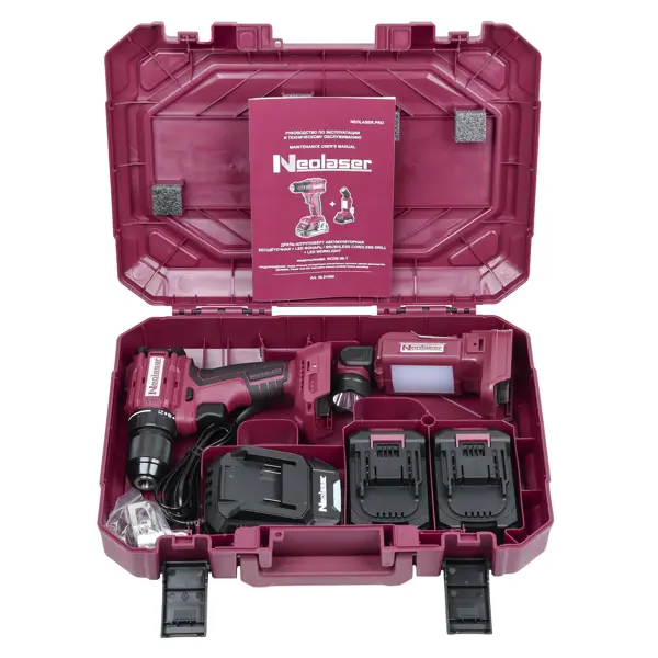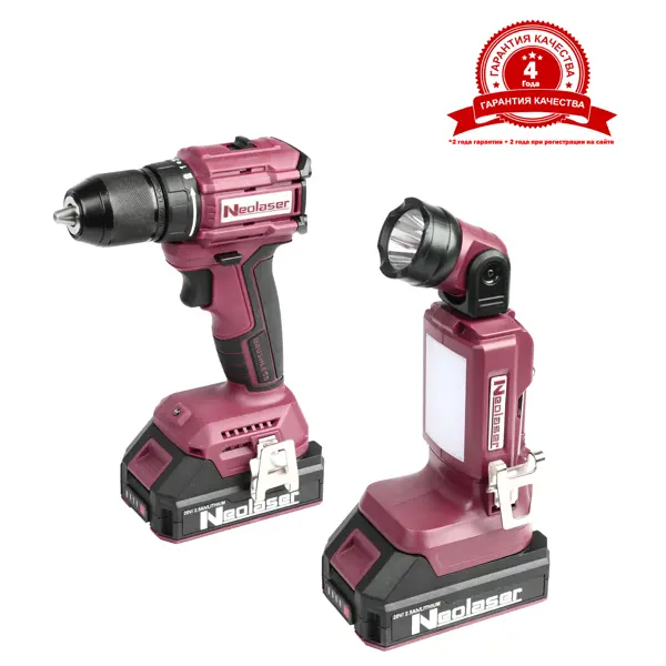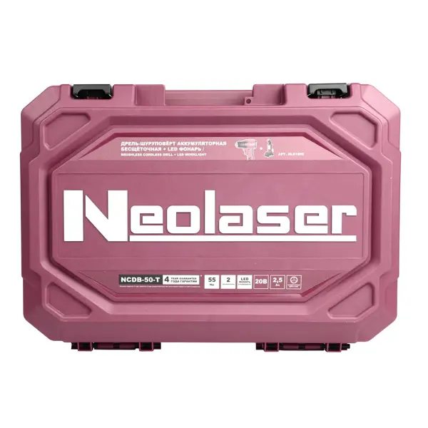 **Аккумуляторная бесщёточная дрель-шуруповёрт Neolaser NCDB-50-T** - это универсальная и легкая дрель-шуруповерт с бесщеточным двигателем, рассчитанная на регулярную интенсивную эксплуатацию. Аккумуляторная дрель-шуруповерт Neolaser NCDB-50 создана для монтажников, мастеров-отделочников, строителей, сборщиков мебели и других профессиональных пользователей. Входящий в комплект поставки переносной аккумуляторный фонарь используется для применения в качестве индивидуального осветительного прибора, а также в качестве сигнального устройства. Инструмент работает от аккумулятора формата единой аккумуляторной базы Neolaser, в которую входят более 16 различных инструментов. ### Преимущества: - Гарантия 4 года (при регистрации инструмента на сайте производителя в течение 4-х недель с момента покупки); - Напряжение аккумулятора 20 В и емкость батареи 2,5 А*ч обеспечивают высокий уровень автономности и позволяют полноценно работать там, где нет доступа к розетке; - Цельнометаллический самоконтрящ