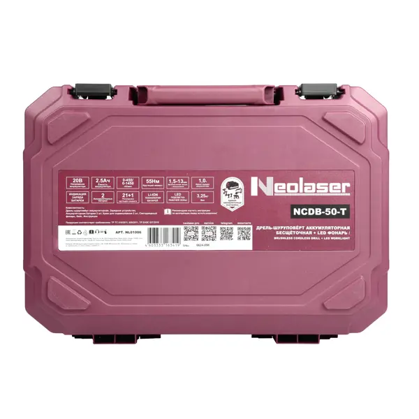 Дрель-шуруповерт аккумуляторная бесщеточная Neolaser NCDB-50-T, 20 В Li-ion 2x2.5 Ач фонарь в комплекте