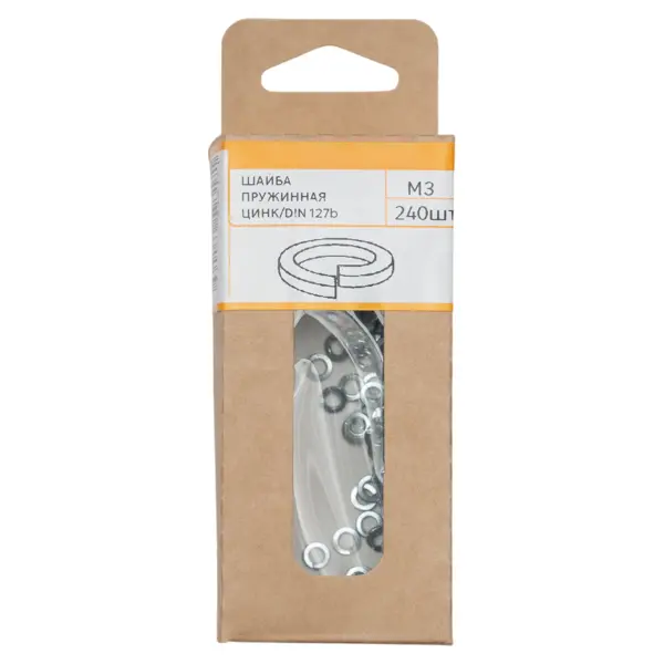 **Шайба пружинная** — это круглый крепежный элемент, концы которого расположены в разных плоскостях. Изделие служит для предотвращения самоотвинчивания крепёжных изделий при деформации под нагрузкой. Производится из оцинкованной стали. ### Особенности: - соответствие стандарту DIN 127B указывает на высокий уровень качества; - имеет размер М3; - в комплекте поставляется 240 шайб.