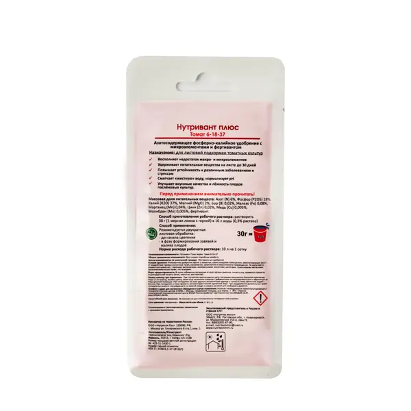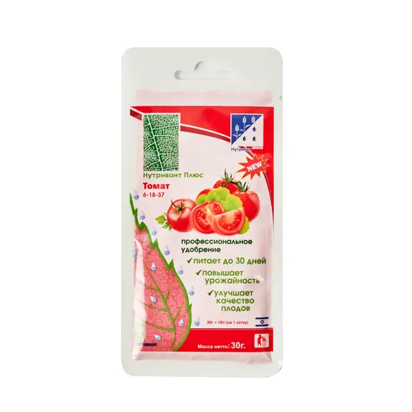 **Удобрение «Нутривант Плюс Томат»** предназначено для подкормки томатов. Оно способствует здоровому росту и развитию растений, повышает урожайность и улучшает качество плодов. ### Преимущества: - Стимулирует цветение и плодоношение. - Улучшает вкусовые качества томатов. - Легко растворяется в воде и равномерно распределяется по почве.