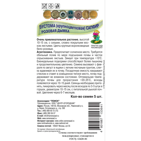 | Норма высева (Га) | Приблизительно 1 кг на 60 м² |
