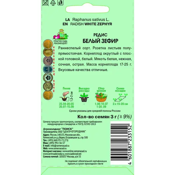 | Период для проращивания рассады | ['Февраль', 'Март'] |