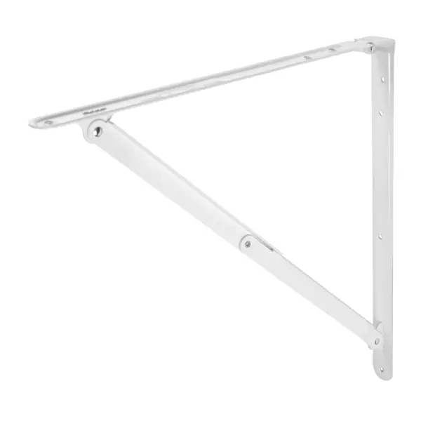 Кронштейн складной — это идеальное решение для подвесных полок, которые используются время от времени. Модель прекрасно подойдет для узких помещений и малогабаритных квартир. Для того чтобы освободить место, достаточно опустить рабочую поверхность полки вниз. Важным преимуществом держателя являются традиционная форма и современный дизайн — изделие органично впишется в интерьер дома или офиса. **Преимущества:** - оптимальное соотношение цены и качества; - минималистичный дизайн; - белый цвет; - из прочного металлического сплава, устойчивого к износу и большим нагрузкам; - долгий срок службы.