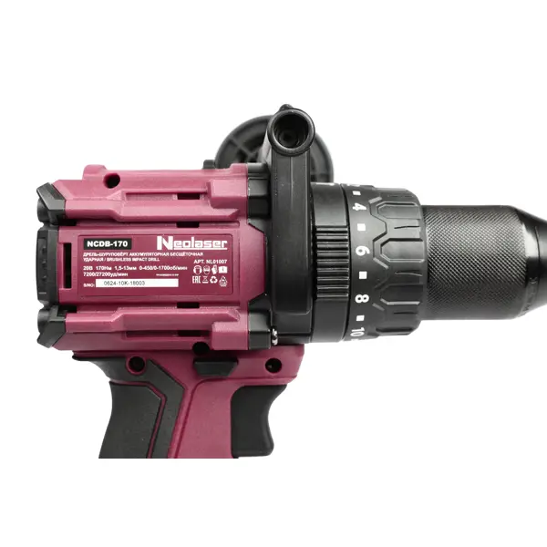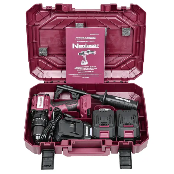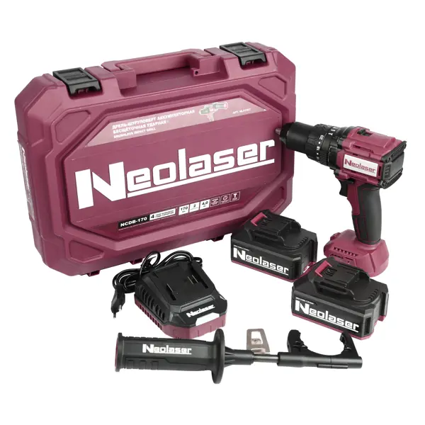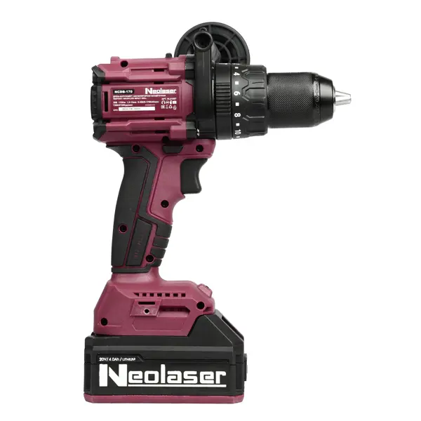 Дрель-шуруповерт аккумуляторная ударная бесщеточная Neolaser NCDB-170, 20 В Li-ion 2x4 Ач