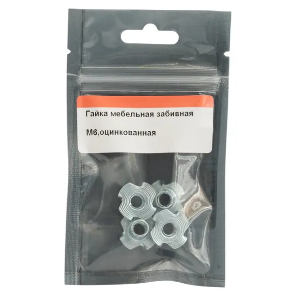**Гайка забивная** — это крепежное изделие, используемое для надежного соединения двух элементов конструкции. Она имеет резьбу М6 и диаметр 6 мм. Изготовлена из высококачественной стали, что обеспечивает прочность и долговечность. ### Особенности: - имеет серебристый цвет, который хорошо сочетается с различными видами материалов; - поставляется в упаковке из 4 штук, что делает покупку выгодной; - подходит для использования в различных отраслях промышленности и строительства.