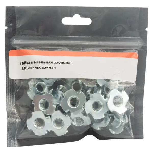 **Гайка забивная** — это крепежное изделие, используемое для надежного соединения двух элементов конструкции. Она имеет резьбу М8 и диаметр 8 мм. Изготовлена из высококачественной стали, что обеспечивает прочность и долговечность. ### Особенности: - имеет серебристый цвет, который хорошо сочетается с различными видами материалов; - поставляется в упаковке из 20 штук, что делает покупку выгодной; - подходит для использования в различных отраслях промышленности и строительства.