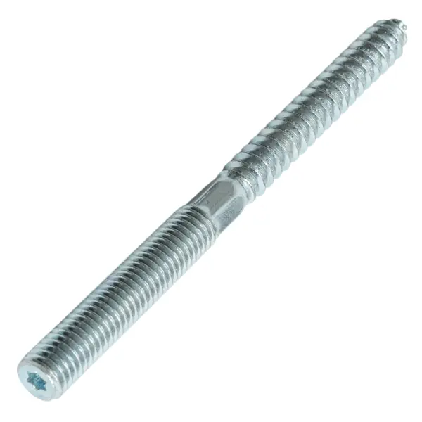 **Шпилька сантехническая** — это цилиндрическая крепежная деталь с двухсторонней резьбой (шурупной и болтовой) и шестигранником в центральной части. Она применяется для крепления напольного и навесного оборудования в санузлах и ванных комнатах, например, раковин, унитазов, зеркал, полочек и шкафчиков. Также ее используют для крепления трубных хомутов к стенам при прокладке трубопроводов. ### Особенности: - устойчивость к коррозии благодаря оцинкованному покрытию; - надежное крепление благодаря двухсторонней резьбе; - удобство монтажа с помощью шестигранного профиля в средней части; - возможность использования в различных материалах оснований, таких как дерево, бетон, кирпич и камень; - изготовлена из оцинкованной стали; - размеры: 10 x 120 мм.