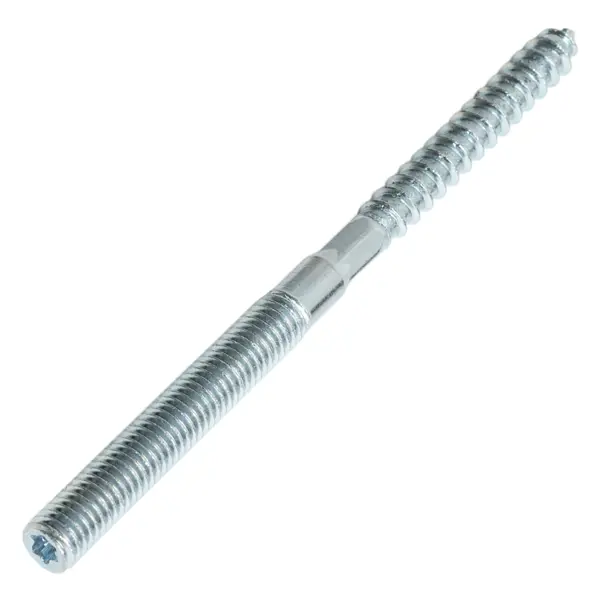 **Шпилька сантехническая** — это цилиндрическая крепежная деталь с двухсторонней резьбой (шурупной и болтовой) и шестигранником в центральной части. Она применяется для крепления напольного и навесного оборудования в санузлах и ванных комнатах, например, раковин, унитазов, зеркал, полочек и шкафчиков. Также ее используют для крепления трубных хомутов к стенам при прокладке трубопроводов. ### Особенности: - устойчивость к коррозии благодаря оцинкованному покрытию; - надежное крепление благодаря двухсторонней резьбе; - удобство монтажа с помощью шестигранного профиля в средней части; - возможность использования в различных материалах оснований, таких как дерево, бетон, кирпич и камень; - изготовлена из оцинкованной стали; - размеры: 8 x 120 мм.