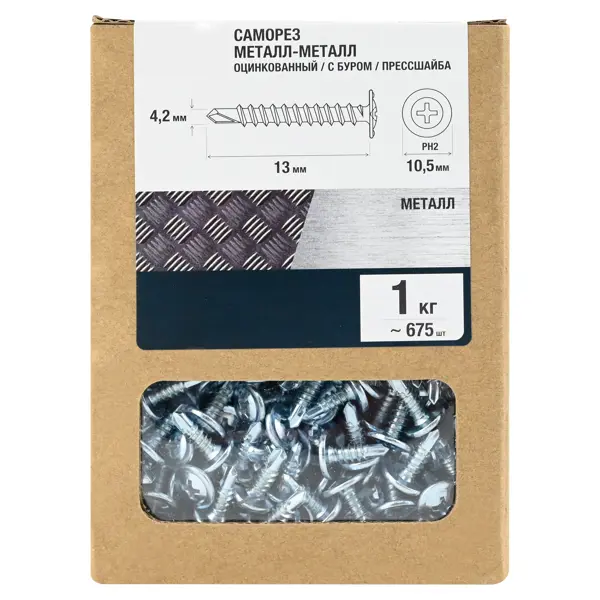 Саморезы по металлу с пресс-шайбой со сверлом оцинкованные 4.2x13 мм 1 кг