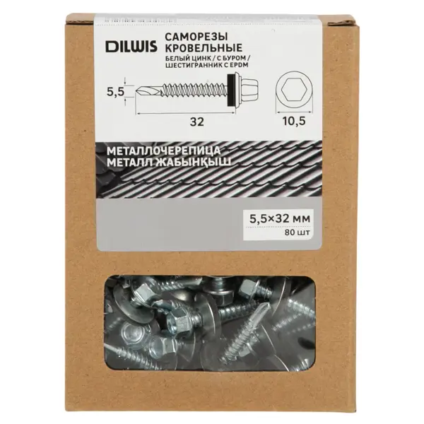 **Саморезы по металлу Dilwis с пресс-шайбой со сверлом оцинкованные 5.5x32 мм 80 шт.** представляют собой высококачественные крепежные элементы, предназначенные для надежного и быстрого крепления различных конструкций к металлическим поверхностям. Они имеют оцинкованное покрытие, которое обеспечивает защиту от коррозии и продлевает срок службы. Эти саморезы оснащены пресс-шайбой и сверлом, что упрощает процесс монтажа и исключает необходимость в дополнительных инструментах. Шестигранный шлиц обеспечивает надежное и комфортное завинчивание. ### Преимущества - Высокая прочность и надежность - Защита от коррозии благодаря оцинкованному покрытию - Удобство монтажа за счет наличия сверла и пресс-шайбы - Универсальность применения на различных материалах - Шестигранный шлиц для комфортного завинчивания