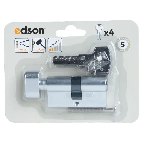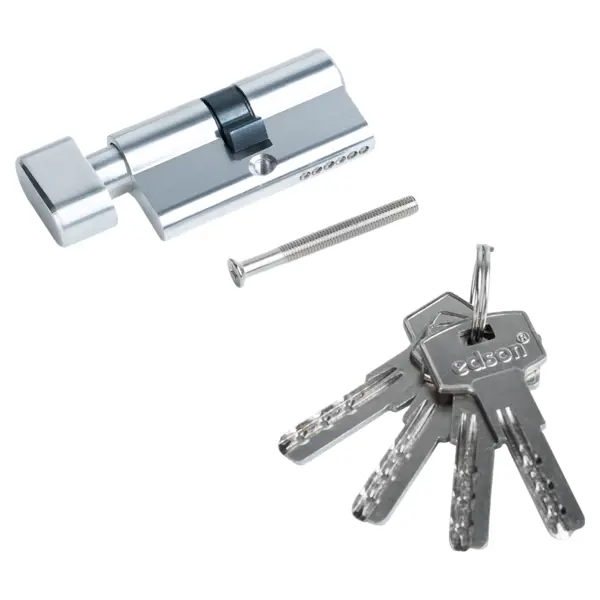 **Цилиндр EDS-CYL** — это механизм замка, предназначенный для установки в двери. Он имеет перфорированный ключ, который обеспечивает высокую секретность и защиту от взлома. Также цилиндр оснащен поворотной ручкой (вертушкой), которая позволяет открывать дверь без использования ключа. Этот цилиндр подходит для установки в межкомнатные двери, а также в входные двери с низкой проходимостью. ### Особенности: - размер: 30 x 30 мм; - материал изготовления — хром; - количество ключей — 4. **БЕРЕЖНО К ЛЮДЯМ, БЕРЕЖНО К ПРИРОДЕ** - Этот товар имеет бесплатную расширенную гарантию от 3 лет. Благодаря увеличенному периоду бесплатного сервисного обслуживания вы продлеваете срок службы товара, экономите на покупке нового в случае поломки и снижаете влияние на окружающую среду.