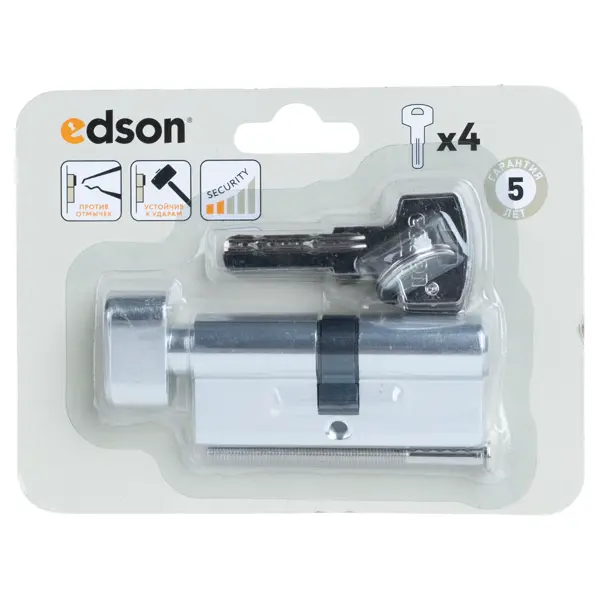 **Цилиндр EDS-CYL** — это механизм замка, предназначенный для установки в двери. Он имеет перфорированный ключ, который обеспечивает высокую секретность и защиту от взлома. Также цилиндр оснащен поворотной ручкой (вертушкой), которая позволяет открывать дверь без использования ключа. Этот цилиндр подходит для установки в межкомнатные двери, а также в входные двери с низкой проходимостью. ### Особенности: - размер: 35 x 35 мм; - материал изготовления — хром; - количество ключей — 4. **БЕРЕЖНО К ЛЮДЯМ, БЕРЕЖНО К ПРИРОДЕ** - Этот товар имеет бесплатную расширенную гарантию от 3 лет. Благодаря увеличенному периоду бесплатного сервисного обслуживания вы продлеваете срок службы товара, экономите на покупке нового в случае поломки и снижаете влияние на окружающую среду.