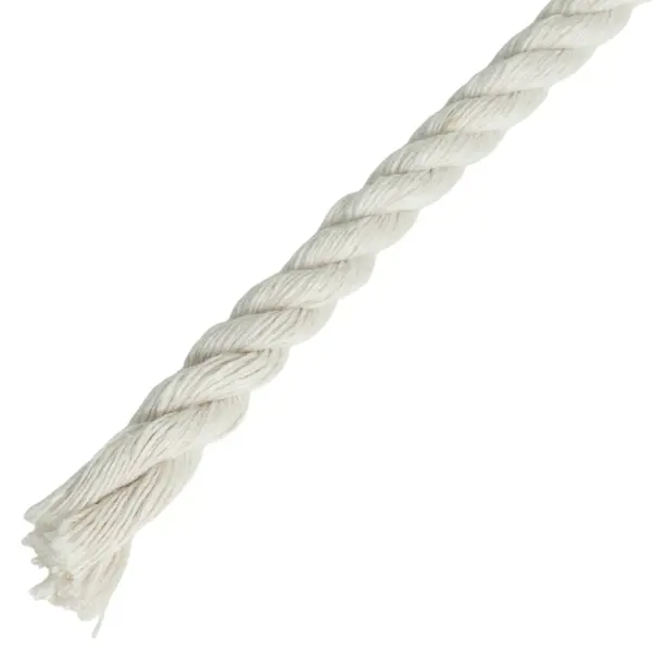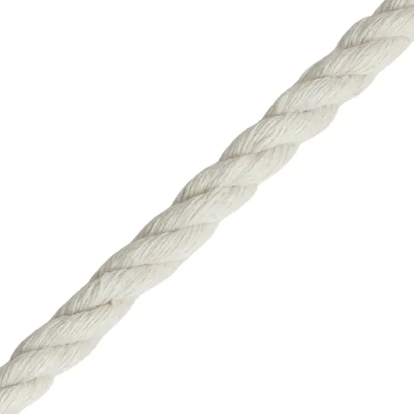 **Веревка натуральная хлопчатобумажная трехпрядная** применяется для оформления интерьеров, лестниц, перил, светильников, рам, а также для создания самостоятельных декоративных элементов. Можно использовать для детских развлекательных комплексов и игр на свежем воздухе, не требующих высокого показателя разрывной нагрузки. При монтажных работах веревка может быть уплотнительным материалом для герметизации стыков и швов. Еще один вариант использования - это создание когтеточек для животных. ### Преимущества: - Диаметр от 6мм до 14мм в мотках, на отрез до 22мм. - Производится методом тросовой свивки, толщина прядей зависит от диаметра конечного изделия. - Изготавливаются канаты из натуральных материалов. В результате изделие - экологически чистое, не выделяет вредные вещества, не концентрирует в себе статическое электричество. - Лёгкие, мягкие канаты, не травмоопасные, при этом гибкие и крепкие. Следует учитывать, что натуральное волокно менее прочное, по сравнению с синтетическим