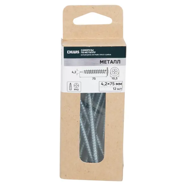 **Саморезы по металлу Dilwis потайные острые оцинкованные 4.2x75 мм 12 шт.** используются для соединения металлических конструкций и деталей. Они предназначены для работы с металлом и имеют острый наконечник, который позволяет легко и быстро завинчивать их в материал. Саморезы имеют покрытие оцинкованное, что защищает их от коррозии и обеспечивает долгий срок службы. Они также имеют шлиц Phillips (PH), который обеспечивает надежное и удобное завинчивание. Основной материал, из которого изготовлены саморезы - углеродистая сталь, что обеспечивает их высокую прочность и надежность. ### Преимущества - Высокая прочность и надежность - Острый наконечник для легкого завинчивания - Покрытие оцинкованное для защиты от коррозии - Шлиц Phillips (PH) для надежного завинчивания - Диаметр 4.2 мм и длина 75 мм для оптимального применения в различных конструкциях