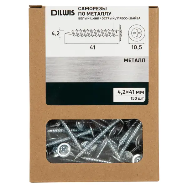 **Саморезы по металлу Dilwis потайные острые оцинкованные 4.2x50 мм 100 шт.** предназначены для применения в различных металлических конструкциях, обеспечивая надежное и прочное соединение. Они изготовлены из углеродистой стали и имеют оцинкованное покрытие, что повышает их коррозионную стойкость. Саморезы имеют острый наконечник и шлиц Phillips (PH), что позволяет легко и быстро закручивать их в металлические поверхности. ### Преимущества - Высокая коррозионная стойкость благодаря оцинкованному покрытию - Прочное и надежное соединение металлических конструкций - Легкость закручивания благодаря острому наконечнику и шлицу Phillips (PH) - Универсальность применения в различных металлических конструкциях