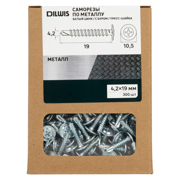 **Саморезы по металлу Dilwis потайные со сверлом оцинкованные 4.2x19 мм 300 шт.** используются для соединения металлических конструкций и деталей. Они имеют оцинкованное покрытие, которое обеспечивает защиту от коррозии и увеличивает срок службы. Саморезы изготовлены из углеродистой стали, что придает им высокую прочность и надежность. Они имеют Phillips (PH) шлиц, который позволяет легко и удобно вкручивать их в металл. ### Преимущества - Высокая прочность и надежность - Защита от коррозии - Легкость и удобство вкручивания - Применение для металлических конструкций и деталей