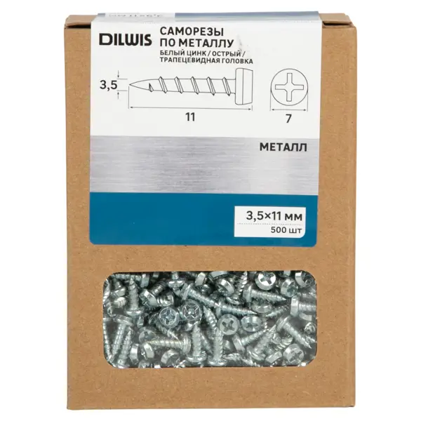 **Саморезы по металлу Dilwis потайные острые оцинкованные 3.5x11 мм 500 шт.** используются для крепления различных металлических конструкций и деталей. Они имеют острый наконечник, который позволяет легко и быстро завинчивать их в металл без предварительного сверления. Саморезы изготовлены из высококачественной стали и имеют оцинкованное покрытие, которое защищает их от коррозии. Они имеют диаметр 3,5 мм и длину 11 мм, что делает их подходящими для использования в различных металлических конструкциях. Саморезы имеют шлиц Phillips (PH), который обеспечивает надежное и удобное завинчивание. Они поставляются в упаковке по 500 штук, что удобно для использования в крупных проектах. ### Преимущества - Высокая прочность и надежность - Легкость завинчивания - Защита от коррозии - Удобный шлиц Phillips (PH) - Подходят для использования в различных металлических конструкциях