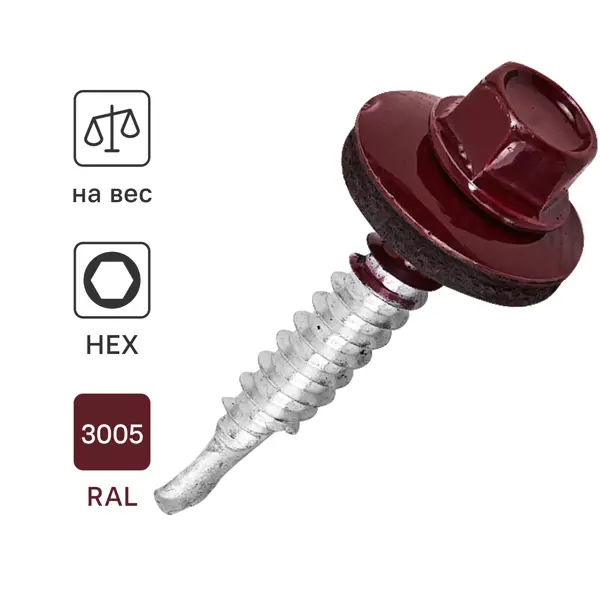 Саморезы кровельные по металлу DILWIS оцинкованные с буром 5.5x32 мм на вес RAL 3005