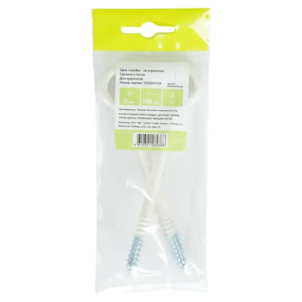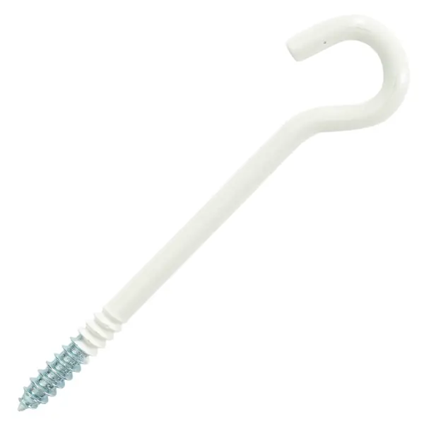 **Винт с крюком** используется для создания негрузоподъемных такелажных систем с применением веревок, тросов, цепей, а также для поддержки проводов. Он выполнен из углеродистой стали. Устанавливается в дерево, бетонные, кирпичные и каменные основания с помощью дюбелей. ### Особенности: - размеры: 8 x 100 мм; - цвет: белый; - в товарной упаковке находится 2 шт.