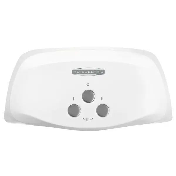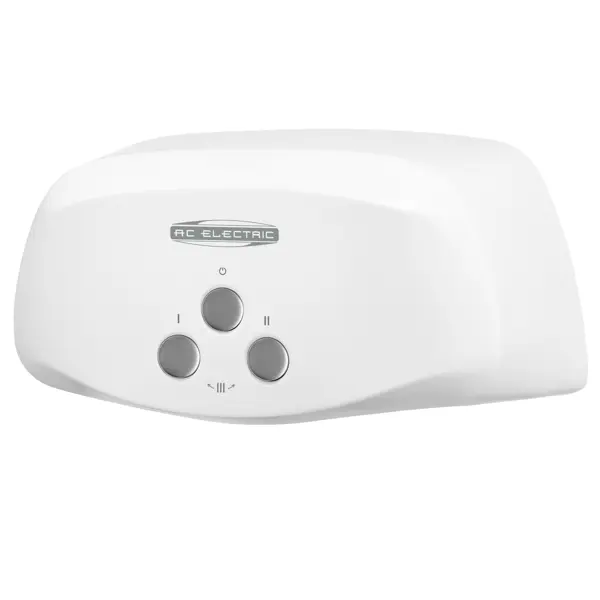 **Проточный водонагреватель электрический AC Electric IWH 3.5 S** — это оптимальное решение для временного использования или в местах с ограниченным доступом к горячему водоснабжению. При правильном использовании обеспечивает комфортное горячее водоснабжение с минимальными затратами на установку и обслуживание. Подходит в качестве временного решения при отключении горячей воды, устанавливается в дачных домах, индивидуальных ванных комнатах, в местах, где нет центрального горячего водоснабжения, как дополнительная точка водоразбора. Принцип действия: при открытии крана срабатывает реле, вода проходит через ТЭН и нагревается. Температура нагрева зависит от входящей воды, мощности и напора. При закрытии крана ТЭН отключается. ### Особенности: - мощность устройства составляет 3,5 кВт; - в комплекте идет душевая лейка; - производительность — около 2 л/мин, чего вполне достаточно для принятия душа; - мгновенно нагревает воду, не требует больших затрат электроэнергии на нагрев сразу большог