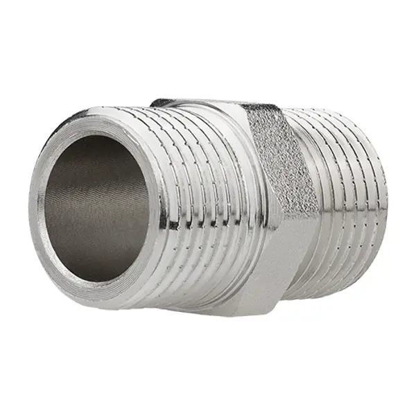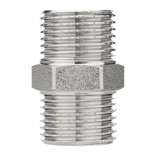 Ниппель усиленный MPF — надежное решение для соединения газопроводов, водопроводных и отопительных систем с повышенными требованиями к прочности и герметичности. Разработан с учетом профессиональных стандартов и особенностей монтажа. ### Преимущества: - Удлиненная резьба: 7 витков вместо стандартных 5 — обеспечивает более прочное и герметичное соединение, расширяя возможности монтажа. - Толщина стенки 3 мм — повышенная надежность в ответственных участках, требующих особой герметичности. - Широкая площадка подхвата (до 7 мм) — удобство при работе и монтажных операциях. - Насечки на резьбе — предотвращают сдвиг уплотнительных материалов при установке. - Изготовлен из латуни с низким содержанием свинца, покрыт никелем — гарантируют долговечность и экологическую безопасность. Используйте ниппель MPF для надежных соединений в системах, где важна максимальная прочность и герметичность.