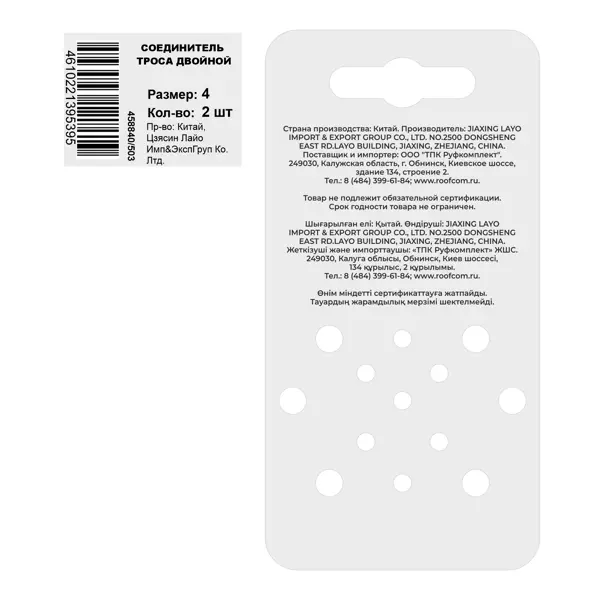**Зажим для троса Duplex** — это втулочный зажим, предназначенный для надежного крепления и соединения стальных тросов. Используется в строительстве для транспортировки и подъема грузов, при монтаже и демонтаже различных конструкций, в такелажных работах для закрепления и соединения тросов, в энергетической сфере для крепления и фиксации тросов, в производственных и промышленных целях для обеспечения надежности крепления. при установке и натяжении канатов в различных системах и механизмах. ### Особенности: - изготовлен из оцинкованной стали— это легкий и прочный металл, устойчивый к коррозии без дополнительного покрытия; - диаметр троса составляет 4 мм, что делает зажим подходящим для тонких тросов; - втулочный, несъемный, одноразовый зажим упрощает конструкцию и снижает стоимость; - количество в наборе — 2 шт., что удобно для одновременного использования или замены; - конструкция представляет собой сплющенный полый цилиндр с тонкими стенками, что обеспечивает простоту установки; - ус