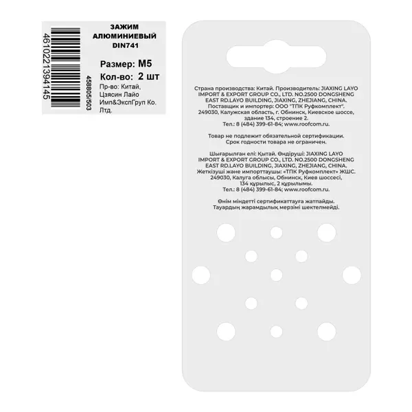 **Зажим для троса DIN 741** — это втулочный зажим, предназначенный для надежного крепления и соединения стальных тросов. Используется в строительстве для транспортировки и подъема грузов, при монтаже и демонтаже различных конструкций, в такелажных работах для закрепления и соединения тросов, в энергетической сфере для крепления и фиксации тросов, в производственных и промышленных целях для обеспечения надежности крепления. при установке и натяжении канатов в различных системах и механизмах. ### Особенности: - изготовлен из оцинкованной стали — это легкий и прочный металл, устойчивый к коррозии без дополнительного покрытия; - диаметр троса составляет 5 мм, что делает зажим подходящим для тонких тросов; - втулочный, несъемный, одноразовый зажим упрощает конструкцию и снижает стоимость; - количество в наборе — 2 шт., что удобно для одновременного использования или замены; - конструкция представляет собой сплющенный полый цилиндр с тонкими стенками, что обеспечивает простоту установки; -