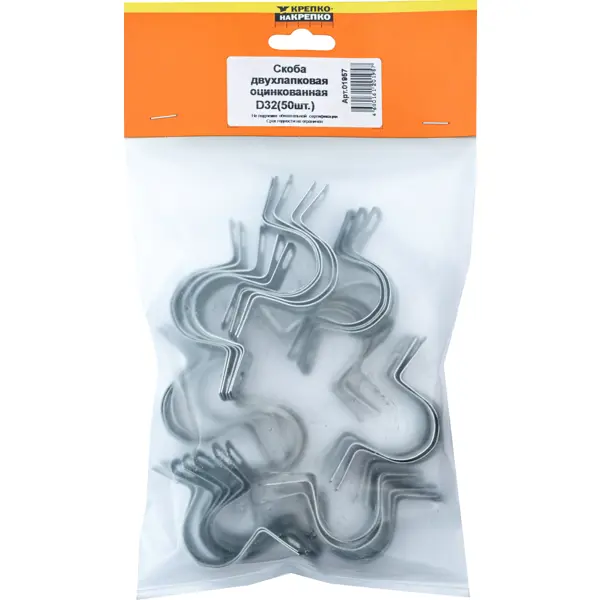 **Скоба двухлапковая Крепко-накрепко** — это деталь, используемая для соединения конструкций и элементов строительных конструкций. Она имеет особую форму, которая обеспечивает высокую прочность и стабильность при работе с большими нагрузками. Скоба изготавливается из прочного материала, устойчивого к коррозии и внешним факторам. Эта скоба используется в различных отраслях промышленности для надежного соединения элементов. Благодаря своей компактности и легкости монтажа она подходит для работы в ограниченном пространстве, а также при вибрации и динамических нагрузках. ### Особенности: - размер в 32 мм подходит для большинства соединений; - изготовлена из оцинкованной стали, не подверженной коррозии; - в упаковке находится 50 шт.
