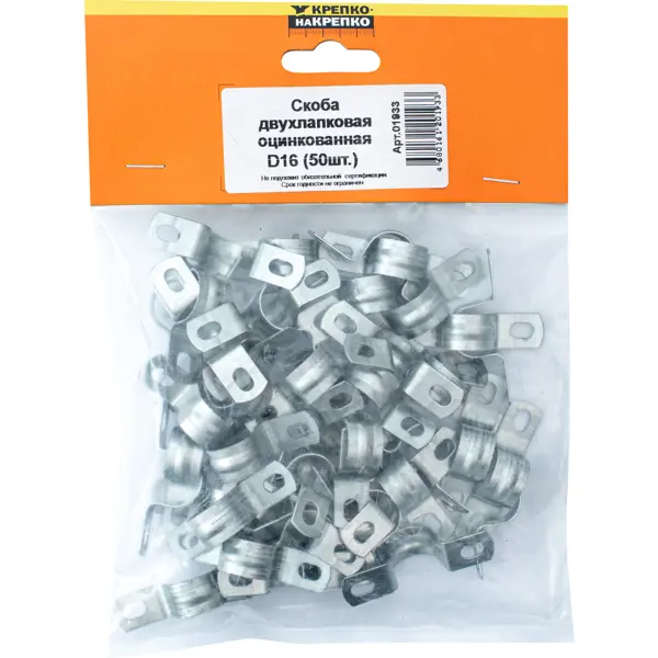 **Скоба двухлапковая Крепко-накрепко** — это деталь, используемая для соединения конструкций и элементов строительных конструкций. Она имеет особую форму, которая обеспечивает высокую прочность и стабильность при работе с большими нагрузками. Скоба изготавливается из прочного материала, устойчивого к коррозии и внешним факторам. Эта скоба используется в различных отраслях промышленности для надежного соединения элементов. Благодаря своей компактности и легкости монтажа она подходит для работы в ограниченном пространстве, а также при вибрации и динамических нагрузках. ### Особенности: - размер в 16 мм подходит для большинства соединений; - изготовлена из оцинкованной стали, не подверженной коррозии; - в упаковке находится 50 шт.