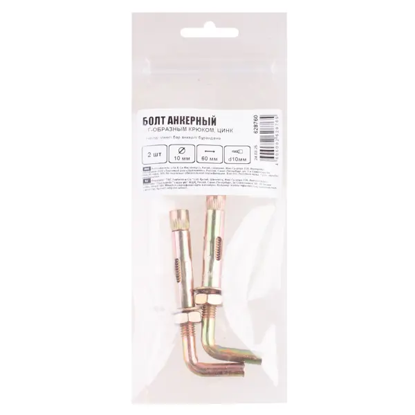**Анкер с крюком** — это крепежное изделие, состоящее из металлической втулки, болта и конусной гайки. Установка производится путем сквозного монтажа в предварительно просверленное отверстие как в прикрепляемом материале, так и в основании. Конструкция включает три основных элемента: металлическую втулку, болт, конусную гайку. Основное назначение данного крепежного элемента: крепление стальных конструкций, установка решеток, монтаж перил, установка консолей, крепление лестниц, монтаж ворот, работы с бетоном, работы с природным камнем плотной структуры. ### Особенности: - надежное крепление обеспечивается за счет силы трения между втулкой и материалом основания; - существует возможность демонтажа анкера при необходимости; - отличается устойчивостью к коррозии за счет цинкового покрытия; - размеры: 10 x 60 мм; - в комплекте идут 2 шт.