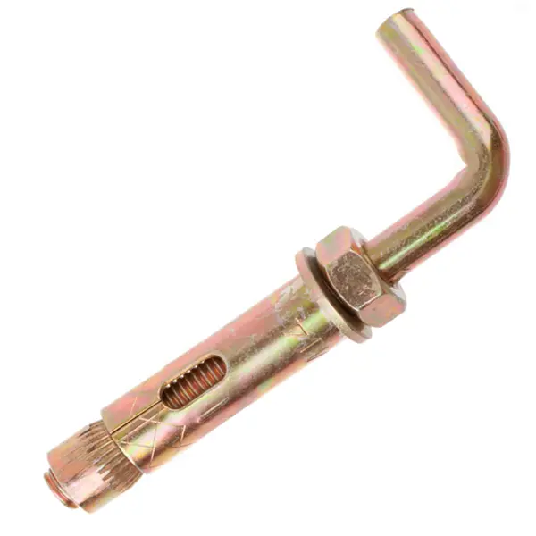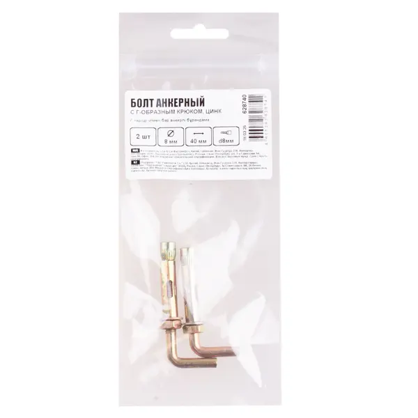 **Анкер с крюком** — это крепежное изделие, состоящее из металлической втулки, болта и конусной гайки. Установка производится путем сквозного монтажа в предварительно просверленное отверстие как в прикрепляемом материале, так и в основании. Конструкция включает три основных элемента: металлическую втулку, болт, конусную гайку. Основное назначение данного крепежного элемента: крепление стальных конструкций, установка решеток, монтаж перил, установка консолей, крепление лестниц, монтаж ворот, работы с бетоном, работы с природным камнем плотной структуры. ### Особенности: - надежное крепление обеспечивается за счет силы трения между втулкой и материалом основания; - существует возможность демонтажа анкера при необходимости; - отличается устойчивостью к коррозии за счет цинкового покрытия; - размеры: 8 x 40 мм; - в комплекте идут 2 шт.