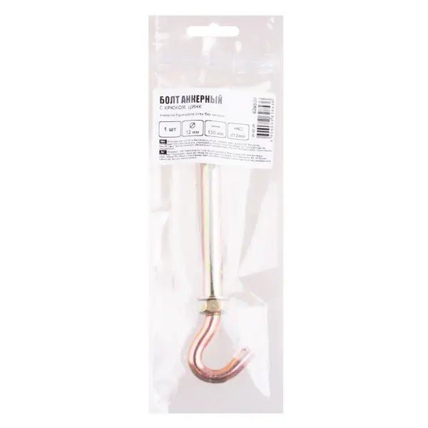 **Анкер с крюком** — это крепежное изделие, состоящее из металлической втулки, болта и конусной гайки. Установка производится путем сквозного монтажа в предварительно просверленное отверстие как в прикрепляемом материале, так и в основании. Конструкция включает три основных элемента: металлическую втулку, болт, конусную гайку. Основное назначение данного крепежного элемента: крепление стальных конструкций, установка решеток, монтаж перил, установка консолей, крепление лестниц, монтаж ворот, работы с бетоном, работы с природным камнем плотной структуры. ### Особенности: - надежное крепление обеспечивается за счет силы трения между втулкой и материалом основания; - существует возможность демонтажа анкера при необходимости; - отличается устойчивостью к коррозии за счет цинкового покрытия; - размеры: 12 x 130 мм.