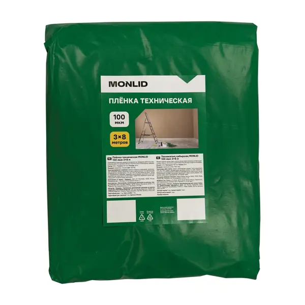 **Пленка техническая Monlid** предназначена для защиты от влаги и воды в строительстве и ремонте. Она используется для изоляции фундаментов, крыш, стен, перекрытий и других конструкций. Пленка обладает высокой прочностью, устойчивостью к ультрафиолету и химическим воздействиям, а также паропроницаемостью. ### Особенности: - толщина полотна — 100 мкм; - размеры: 3 x 8 м. **БЕРЕЖНО К ЛЮДЯМ, БЕРЕЖНО К ПРИРОДЕ** - Товар содержит не менее 15% вторичного сырья в составе. Выбирая продукцию с переработанными материалами, вы помогаете сокращать количество отходов на полигонах и поддерживаете ответственное потребление.