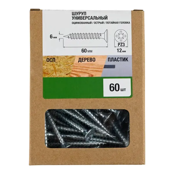 Саморезы универсальные потайные острые оцинкованные 6x60 мм 60 шт.
