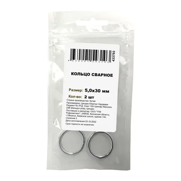 **Кольцо сварное** — это крепежный элемент, изготовленный из стали с оцинкованным покрытием, который используется для различных целей в строительстве, производстве и быту. Применяется для подвешивания различных предметов и оборудования, а также для крепления цепей, тросов и других элементов. Используется в строительстве, производстве, ремонте и быту для обеспечения надежного крепления и фиксации. Подходит для использования в различных отраслях благодаря своей прочности и устойчивости к коррозии. ### Особенности: - изготовлено из стали, что обеспечивает высокую прочность и долговечность; - оцинкованное покрытие защищает изделие от коррозии и увеличивает срок службы; - размеры: М5 x 30 мм; - количество в наборе — 2 шт., что позволяет использовать их для различных целей или создавать запасные; - страна производства — Китай.