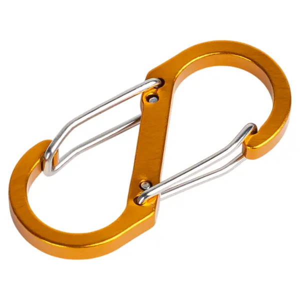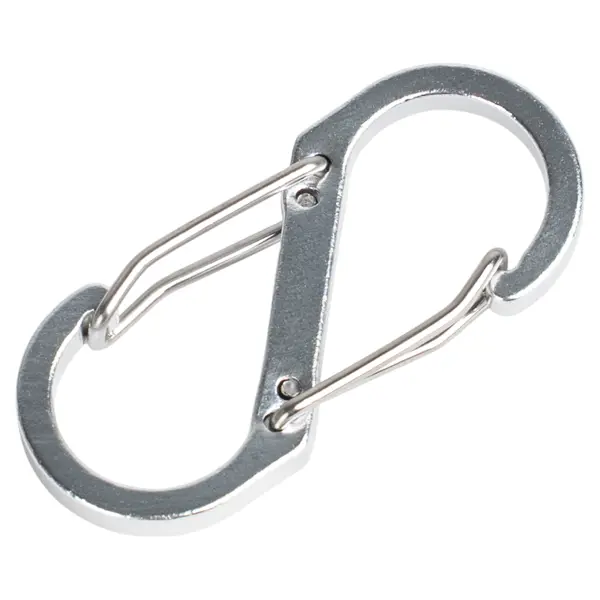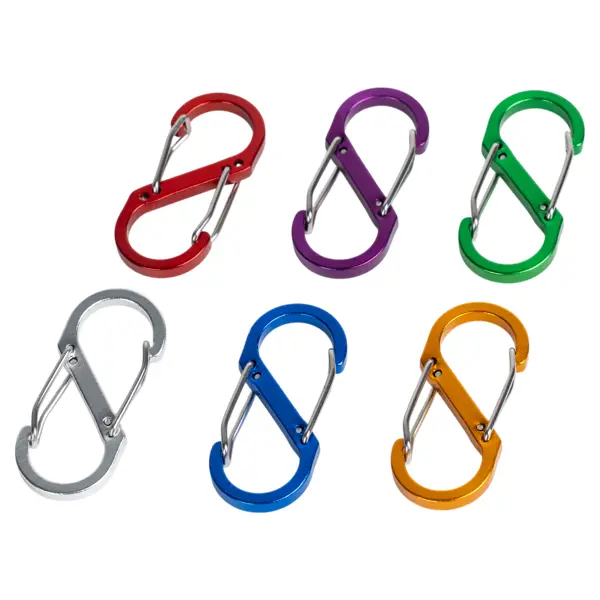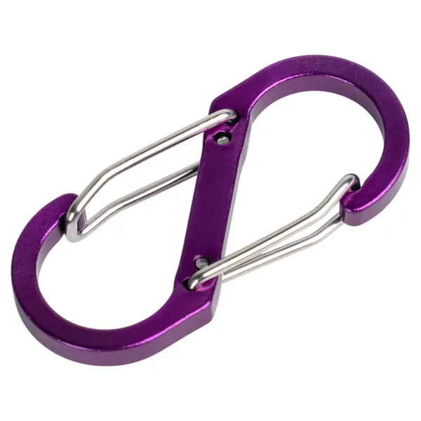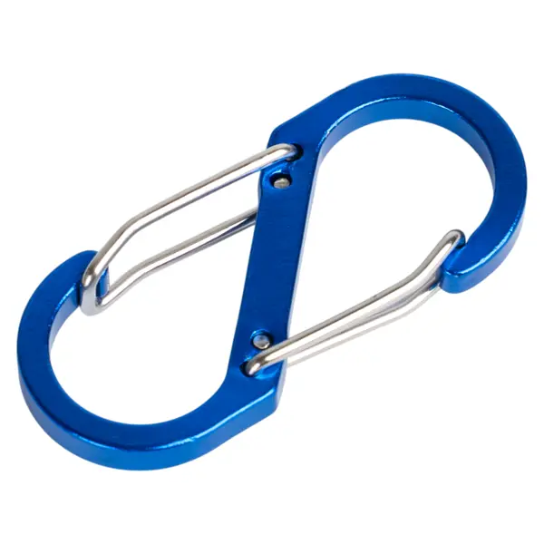 **Карабин S-образный** — это универсальное устройство для крепления и фиксации туристического снаряжения. Он используется для подвешивания предметов, соединения веревок и быстрой замены фастексов на рюкзаке в полевых условиях. Карабин выполнен из качественных материалов, обеспечивающих эффективность и долгий срок службы. ### Особенности: - карабины цветные, что позволяет легко идентифицировать крепления; - диаметр — 50 мм.