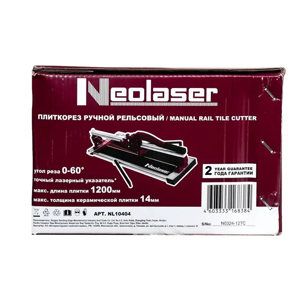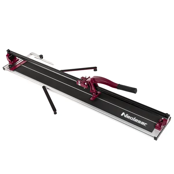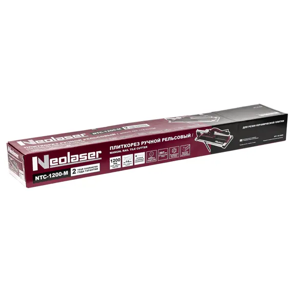 **Плиткорез ручной рельсовый Neolaser NTC-1200-M** — инструмент, широко применяется в ремонтных и строительных работах. С его помощью можно разрезать плитку и получать таким способом более мелкие фрагменты. Процесс разделения материала не сопровождается большим количеством пыли и разбрызгиванием воды, как при использовании крупногабаритных станков. Уровень шума незначительный, что обеспечивает комфортную работу. Кроме того, ручной инструмент позволяет добиться высокого качества реза и отсутствие сколов — при условии, что у керамической плитки нет заводских дефектов. Режущим элементом служит ролик, выполненный из карбид вольфрама. Дополнительные опоры, которые расположены по двум сторонам основания, упрощают работу с плитками большого формата. ### Преимущества: - максимальная длина реза достигает 1200 мм — дает возможность работать с большими плитками; - толщина реза керамической плитки — до 14 мм, керамогранита — до 10 мм; - подходит для профессионального использования; - конструкция у