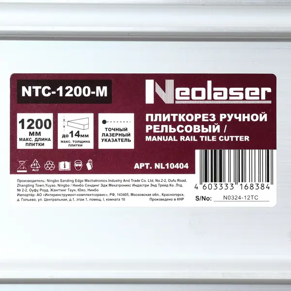 Плиткорез ручной рельсовый Neolaser NL10404 1200 мм толщина реза 14 мм