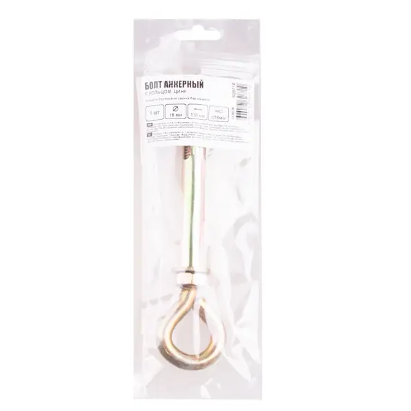 **Анкер с кольцом** — это крепежный элемент, предназначенный для монтажа тяжелых подвесных конструкций и установки растяжек. Конструкция анкерного болта включает шпильку с изогнутым кольцом на одном конце, стальную оболочку с сечениями, конусовидную цангу с внутренней резьбой. Принцип работы: при затягивании шпильки цанга распирает оболочку, обеспечивая надежное крепление в основании. Анкер предназначен для монтажа тяжелых подвесных конструкций, установки растяжек, крепления тросов, цепей, канатов и веревок, монтажа различного такелажа. ### Особенности: - подходит для монтажа в бетон; - можно использовать для крепежа конструкций в полнотелый кирпич; - допускается установка в камень; - обеспечивает надежное крепление благодаря распорной конструкции; - защитное цинковое покрытие предотвращает коррозию; - размеры: 16 x 130 мм.