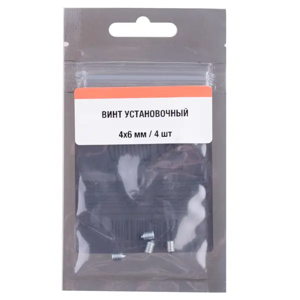 **Винт установочный** представляет собой крепежный элемент с резьбой М3 и длиной 4 мм, выполненный из стали 45H с серебристым покрытием. Этот тип крепежа относится к категории установочных элементов и имеет плоскую форму наконечника для точной фиксации деталей. Предназначен для фиксации деталей друг относительно друга, точной установки компонентов в механизмах, крепления деталей в резьбовое отверстие, создания надежных соединений в различных конструкциях. ### Особенности: - имеет внутренний шестигранник для простоты установки шестигранным ключом; - оснащен плоским концом для точной фиксации; - резьба метрическая с крупным шагом; - выполнен из высокопрочной стали 45H; - имеет защитное серебристое покрытие; - подходит для многократного использования; - размеры: 4 x 6 мм; - в упаковке находится 4 шт.