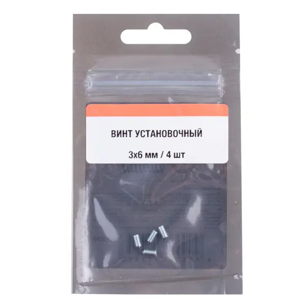 **Винт установочный** представляет собой крепежный элемент с резьбой М3 и длиной 4 мм, выполненный из стали 45H с серебристым покрытием. Этот тип крепежа относится к категории установочных элементов и имеет плоскую форму наконечника для точной фиксации деталей. Предназначен для фиксации деталей друг относительно друга, точной установки компонентов в механизмах, крепления деталей в резьбовое отверстие, создания надежных соединений в различных конструкциях. ### Особенности: - имеет внутренний шестигранник для простоты установки шестигранным ключом; - оснащен плоским концом для точной фиксации; - резьба метрическая с крупным шагом; - выполнен из высокопрочной стали 45H; - имеет защитное серебристое покрытие; - подходит для многократного использования; - размеры: 3 x 6 мм; - в упаковке находится 4 шт.